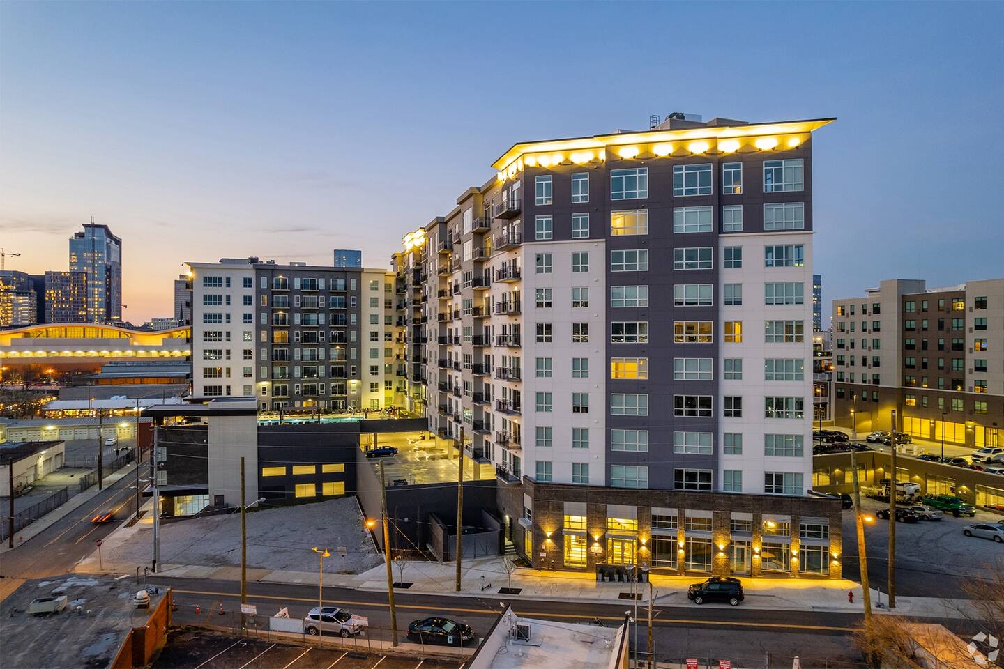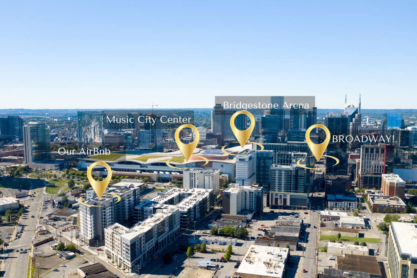 We are right in the heart of downtown. Ole Smoky Distillery and Yee Haw Brewing Company, Starbucks, and Parlor Doughnuts are just downstairs. We are 3 blocks away from Bridgestone Arena, Tootsie's, Legends Corner, and all the shops, bars, and restaurants on Broadway!