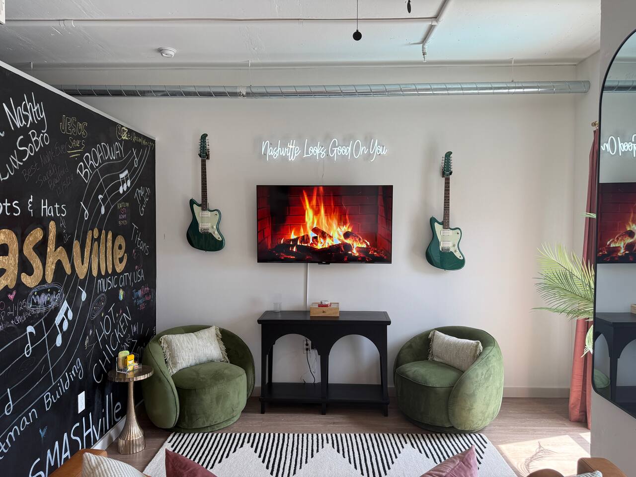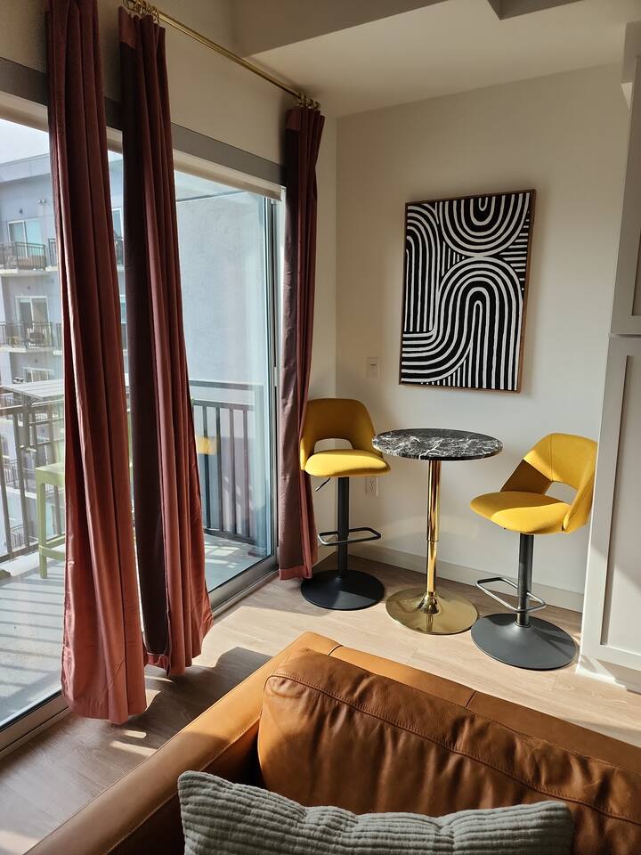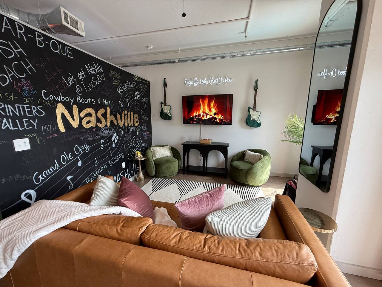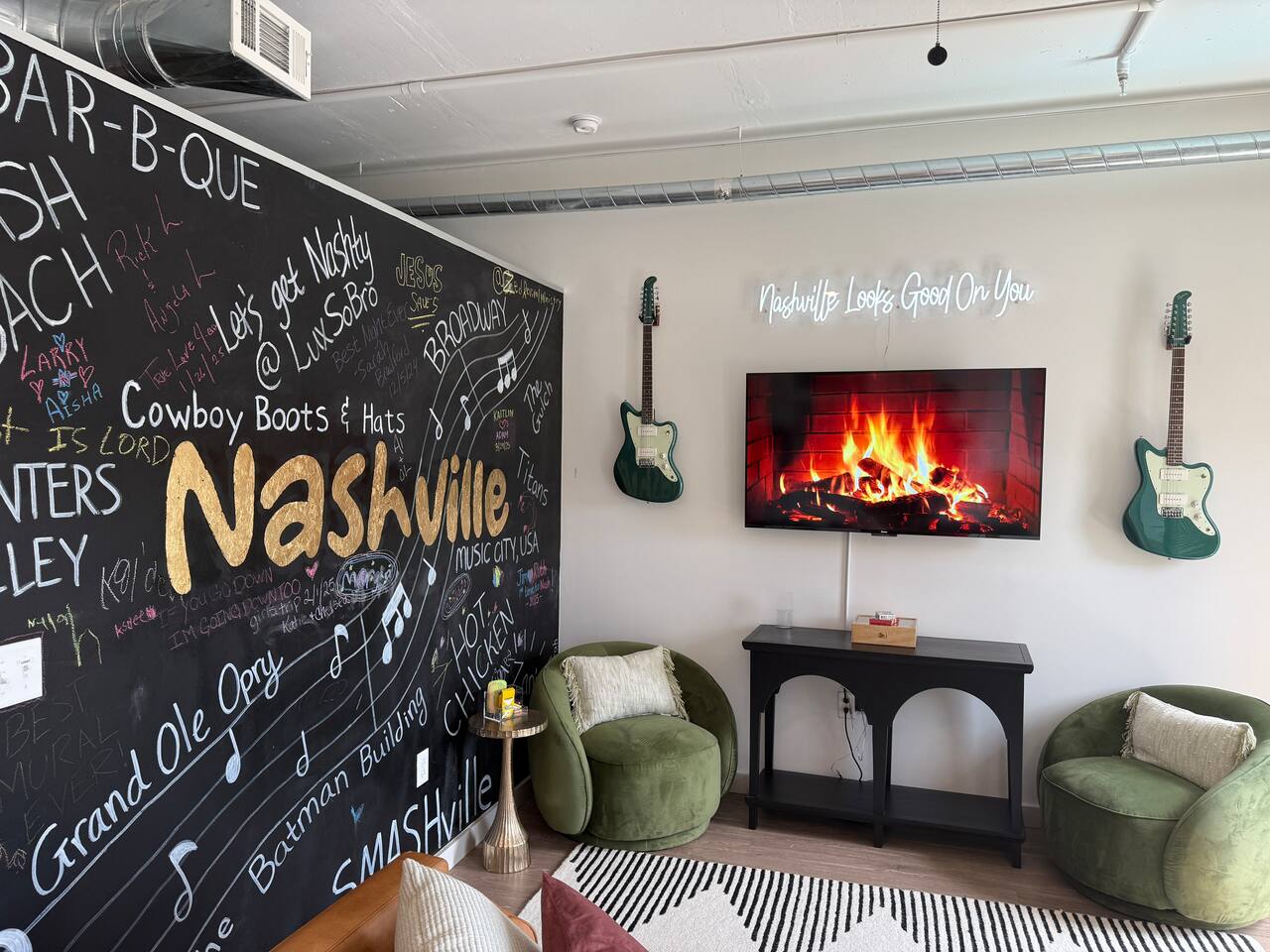 ✨ THE SPACE Location location! Just 3 blocks from Broadway. Designed to blend modern elegance with Southern charm, this thoughtfully curated loft delivers both comfort and character. 🛏 Sleeping Arrangements • 1 luxurious bedroom with a plush king bed • 1 queen sleeper sofa in the living room • Comfortably sleeps 4 guests The bedroom is a playful tribute to all things Nashville, featuring crisp linens and cozy touches to ensure a restful night’s sleep after exploring the city. 🛋 Living & Entertainment • Cozy living room with sleeper sofa + flat screen TV • Vinyl record player with assorted records • Floor-to-ceiling windows with panoramic Music City views • Chalkboard feature wall — perfect for selfies and leaving your Nashville story Relax after a day on Broadway, stream your favorite shows, or spin classic country vinyl while soaking in the skyline views. The energy of Nashville flows right through the space. • Wheelchair accessible with no stairs, same level living. 🍳 Kitchen & Dining • Full kitchen with stainless steel appliances • Pub-style dining table with plush barstools • Coffee on your private balcony overlooking the pool Whether you're preparing a quick breakfast or evening cocktails, the kitchen blends upscale design with modern convenience. 🌆 RESORT-STYLE AMENITIES Enjoy access to premium shared amenities throughout the building: • Saltwater pool • Sky lounge • Fitness center • In-unit washer + dryer • Safe, secure building just steps from Broadway Kosho (Japanese cuisine) and Tipsy Scoops located on the lower level — perfect for dinner or a late-night treat without leaving the building. 📍 LOCATION, LOCATION, LOCATION You truly cannot beat this spot. • 3 blocks to Broadway’s live music scene • Steps to Bridgestone Arena • Walkable to the Ryman Auditorium • Minutes to Nissan Stadium Experience Nashville the way it’s meant to be — on foot, immersed in music, food, and nightlife. 🚗 PARKING • Designated building parking available for $30 per night 📝 IMPORTANT DETAILS ✅ This property has special local compliance requirements which include a signed rental agreement, ID verification, and a security hold of $1000 (which is not a traditional security deposit, just a pending transaction). As an optional alternative to the security hold, you may opt in to purchase a non-refundable damage waiver provided by a third-party insurance company. The optional damage waiver is $49 for stays up to 10 nights, with an additional $1.50 per day for stays longer than 10 nights. Damage waiver purchases are optional. To make this process easy for you, we use a secure and very simple, app-free platform called Happy Guest. It is not an app, and you do not have to sign up for an account - it’s a safe and secure website. It also gives you a guest portal with all the info about the home and all of my favorite local spots. Your guest portal includes advertisements with third-party upgrades that you may want to enhance your stay. These upgrades are optional and include: Late Check out - 1 Hour - $25 If you have any questions, just message us anytime! Happy to help!