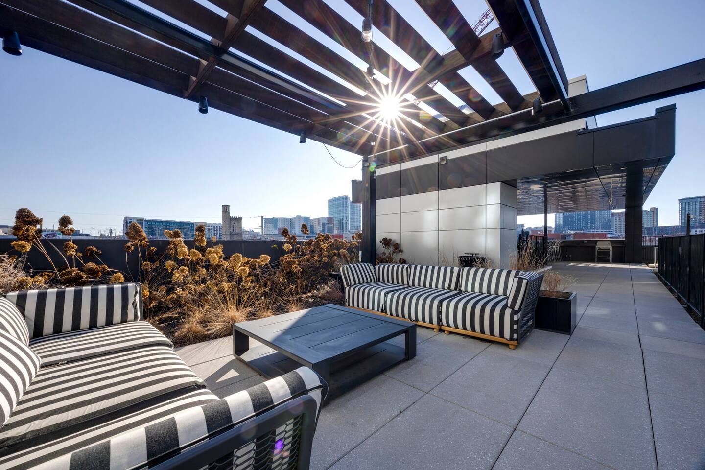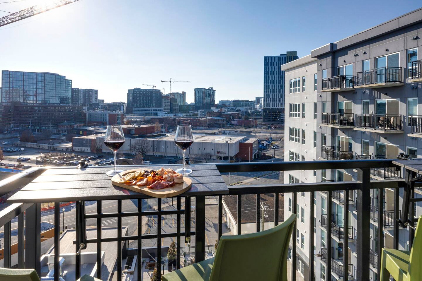Welcome to your Nashville-themed country music home base just 3 blocks from Broadway. Enjoy skyline views from your private balcony overlooking the saltwater resort-style pool, relax in a plush king bed, stream on smart TVs, cook in the full kitchen with in-unit washer/dryer. Work out in the fitness center. Private covered garage parking available. Complimentary coffee and snacks included. Walking distance to downtown Broadway, Ryman Auditorium, Bridgestone Arena, and restaurants!